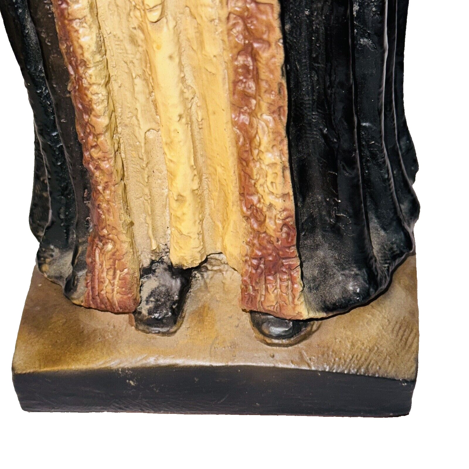 Vintage Esco 1970 Hasidic Rabbi holding the torah wearing a shtreimel and robe. Handpainted cast statue that stands 16 inches high on a 6 inch square base. The statue is in very good condition. Highly detailed hat, hands, robe, and face.