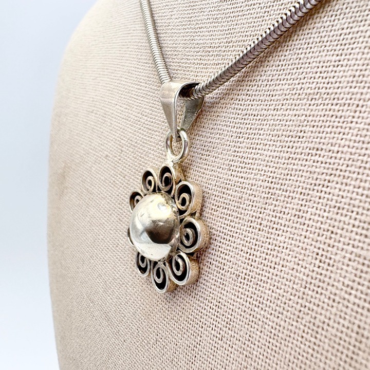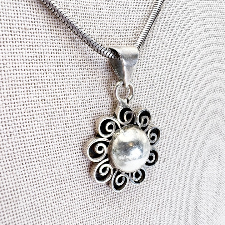 VTG Sterling Silver 925 Abstract Scroll Flower Pendant Necklace